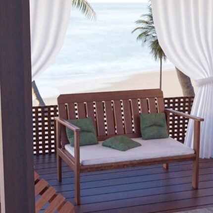 Banco de madeira para área externa havelock madeira. Lindo sofá em madeira maciça com acabamento stein fosco. Sofá versátil e