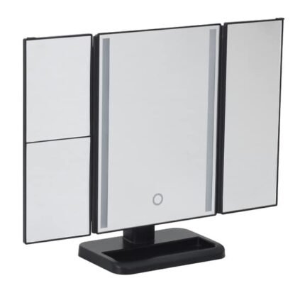 Espelho com Led de Bancada para Maquiagem Retangular Plástico Preto Anny Aemaxx Tenha a iluminação perfeita e o aumento ideal