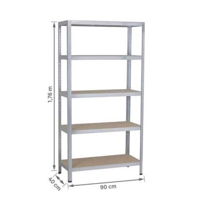 Estante de Aço e Madeira MDF com 5 Prateleiras Prata Carga 176x90x40cm 875kg Spaceo