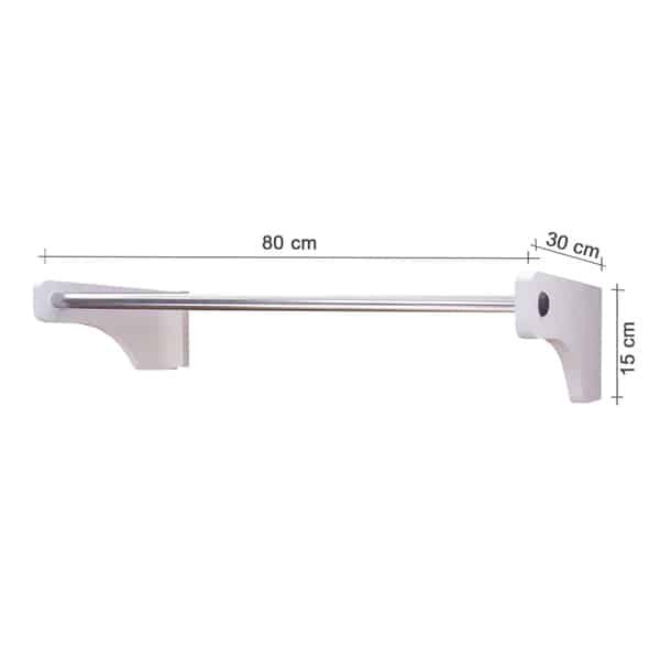 material: mdf laqueado cor: branco acabamento: laqueado tubo em metal cromado modelo: parede capacidade: 20 cabides altura: 15 cm largura: 80 cm