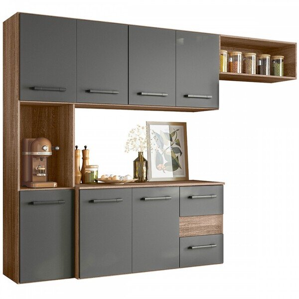 Cozinha Compacta Juliete 7 Portas 2 Gavetas Carvalho Rústico/chumbo – Nicioli