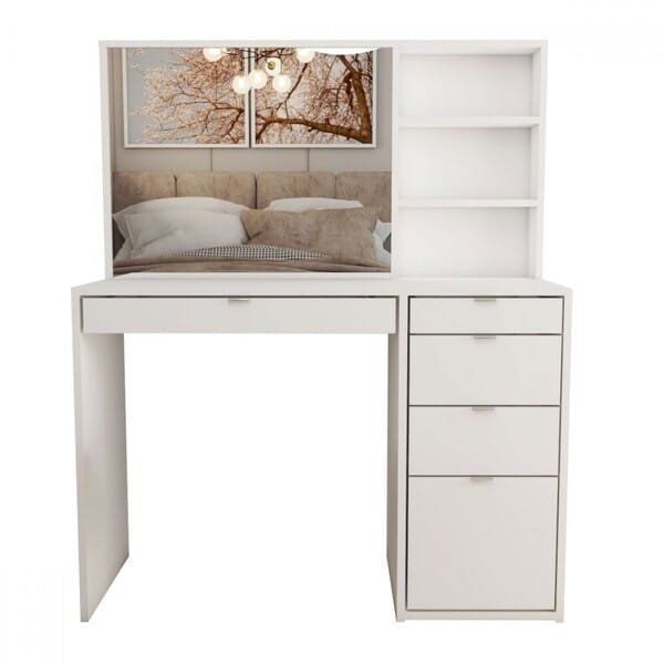 Penteadeira Maria 5 Gavetas 2 Prateleiras Branco – Panorama Móveis